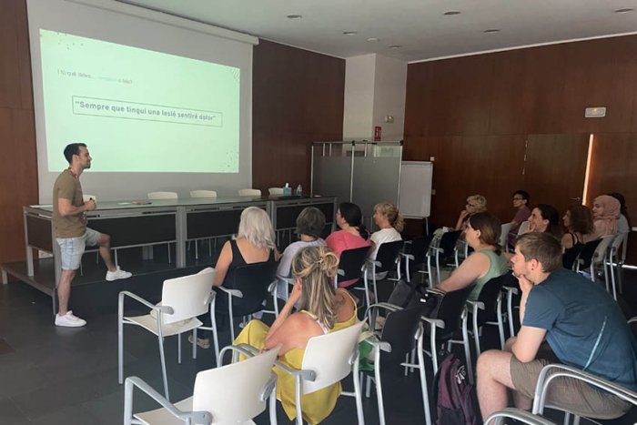 L'activitat va comptar amb la participació de 14 assistents, principalment professionals de la salut i cuidadors principals de persones amb dolor. Es va estructurar en dues parts. A la primera part, de caràcter teòric, el doctor Marc Terradas va explicar que el dolor i la lesió no tenen una relació de causa i efecte directa, destacant que el dolor és una experiència subjectiva influenciada per factors físics, psicològics, socials, emocionals i l'estil de vida de cadascú. També es va debatre sobre la relació entre dolor i lesions. A més, en la seva secció, va mostrar exercicis de columna i força, que els assistents van seguir des de matalassos i cadires.